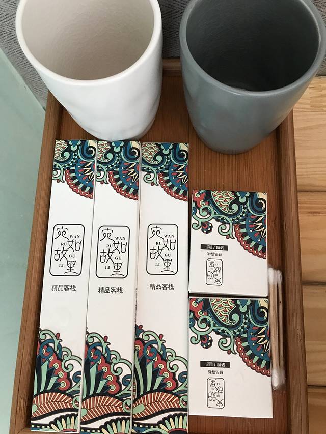 客栈非常整洁,布置讲究,洗漱用品也很精致,还给准备了一次性浴池套,很周到