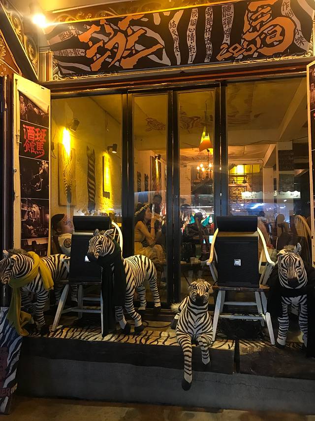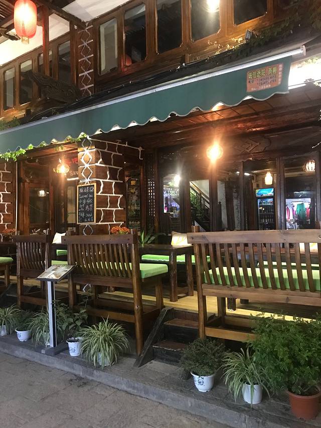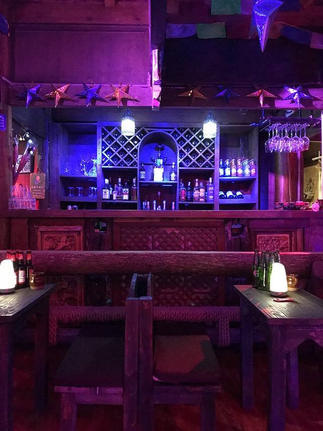 餐后溜达到了四方街,突然下起了大雨,于是躲进了就近的店铺,抬头看到的一家酒吧,里面还有驻唱歌手,于是准备上去坐坐。