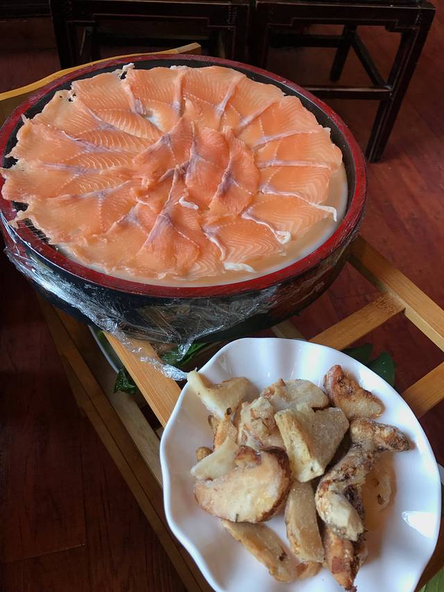 参观虎跳峡之后,回到丽江古城解决晚饭,这个是在大众点评网上看到的,云南的菌类很有名,于是必须试试了,我们在网上团购的178元套餐,然后另加了一份三文鱼