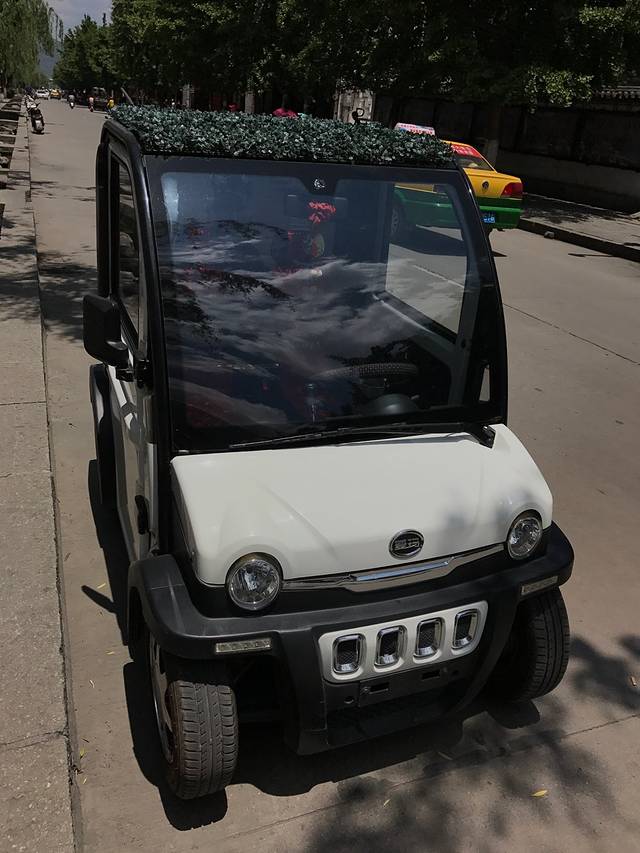租了一辆双人四轮电动车,150元一天,准备去环游洱海西岸