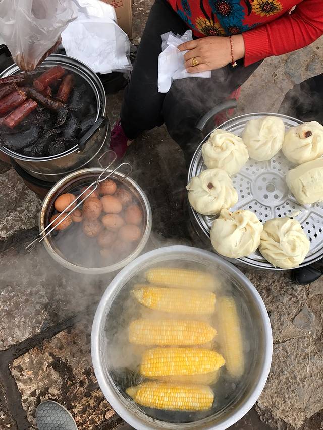 买了当地人的早点,不过包子馅太少,那个肠还挺好吃