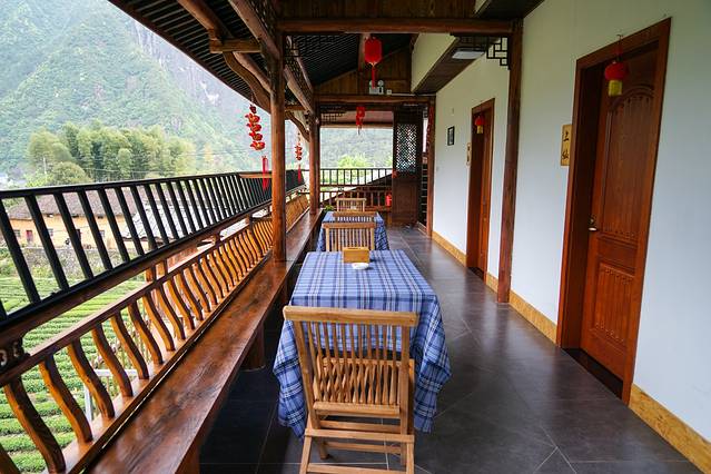 蔡口村下车后,粗粗一看,这里只是一个普通的小山村,并没有什么独特之处。然而走到了闲思居门前后,忽然发现房子处于村子高处,周边的环境豁然开朗,四周青山环绕,屋前一大片茶园,溪水汩汩,不远初古老房子的泥土墙,把这一切衬托着很美很美。