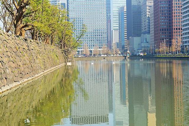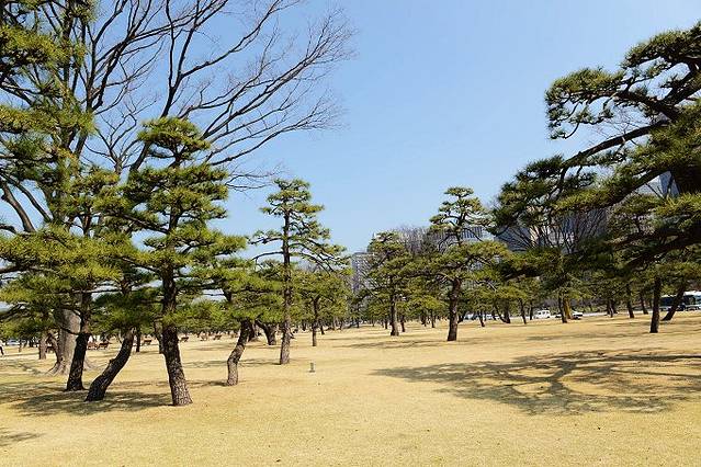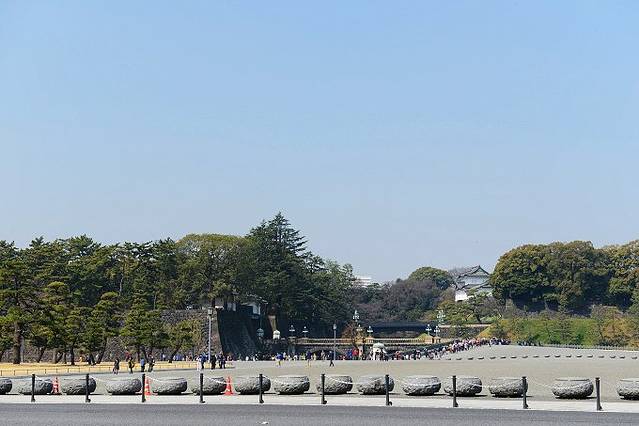 这里是天皇的府邸,每年有特殊活动或纪念日的时候,天皇会携全家站在桥上跟民众挥手致意。我和S之前来过,这次也是带妈妈来故地重游,我跟妈妈讲了二重桥的历史背景,以及为什么它前面的广场上会铺满细细的小石子,作用其实是防忍者行刺的,踩在上面会有声音,除非轻功或凌波微步,哈!~~二重桥外的护城河竟然还有一对儿天鹅,蓝天白云,景致颇好。