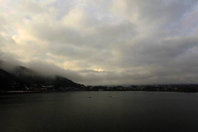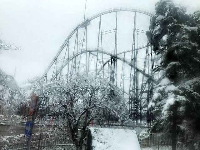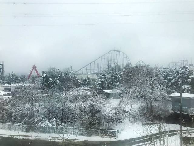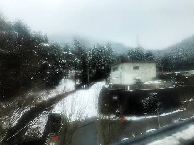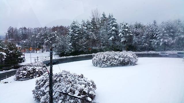 这时我才有心情望向窗外,天啊,我竟然在失物招领的过程中从春天穿越到了冬天,外面白茫茫一片,银装素裹,分外妖娆啊。河口湖竟然下雪了。