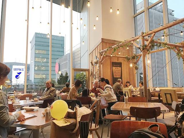 由于天气不好,下雨,海滨公园直接PASS了, 看了自由女神像,简单逛了逛,就去了DECKS Tokyo Beach seaside mall吃午餐。找了很有名的西餐厅BILLS,tabelog评分3.59,果然不负众望,松饼好吃得飞起来,鸡翅牛排意面更是很用心,结账的时候发现原来这是家澳洲餐厅,后厨一水儿老外。