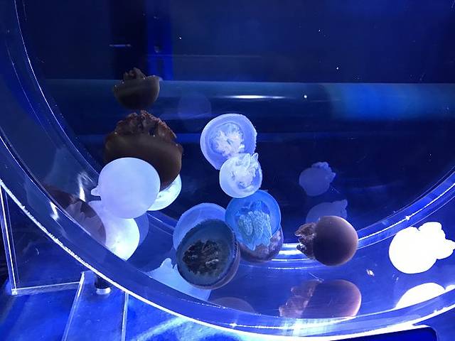 我们和天空树合过影直奔墨田水族馆了,本来想登塔的,但是后来觉得有过六本木的夜景已满足了,没必要重复类似行程,再加上排队的人巨多巨多,目测40分钟估计都悬,于是放弃了登塔。按照服务处人员指示,找到了5层的水族馆。