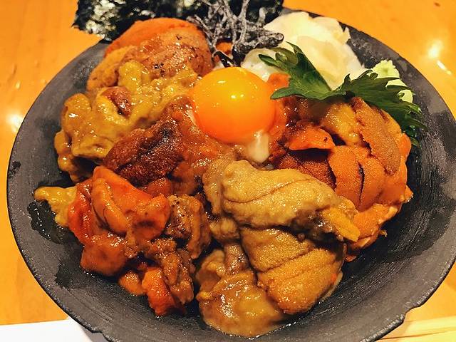 我和先生是海胆迷,虎杖的海胆饭慕名已久,太赞了,入口即化,新鲜得想哭了,我们点了五种海胆丼,给Samon和妈妈点了面,Samon的大胃王不是浪得虚名,从千姿百态的吃相上就能看出来,他真的是在吃,不是挖鼻孔。