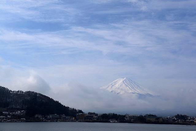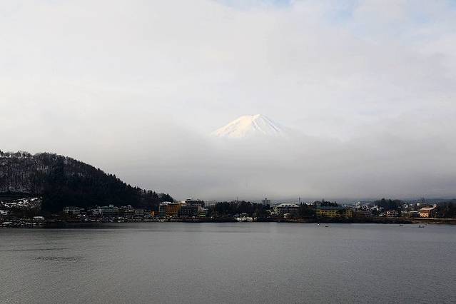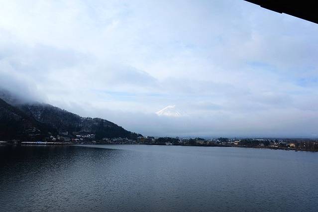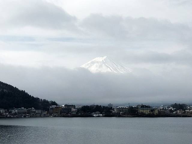 7点多我们都起来了,由于要取项链,我定了早一些的返回东京的巴士,就在我洗漱化妆完毕准备出门吃早点的时候,S喊道,露出来露出来了,一个尖儿好像,快看!哇塞,一个金色的边儿开始逐渐扩大,透过云层可以看到山尖,但不是很清楚。等等看了只能,10分钟之后,富士山好像在跟我们捉迷藏一样,若隐若现,最后一张算是露得最多的一瞬间了,还是叠着云,不过我已经很满足了,赶紧跑上阳台按下快门咔嚓咔嚓。