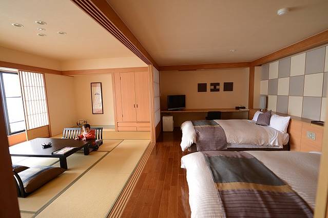 我们回到了车站,时间刚好,给酒店打了电话,5分钟后派车来接我们,一辆小客车,拉了一车国际友人,最后一对欧美客人上车跟司机说"Hello”,不知道是日本人性格内敛还是司机不擅长英语,没有回应,那对客人和司机四目相望,尴尬了两秒钟,一个小嫩声“Hello”打破了僵局,Samon回了人家一句,引得全车人大笑。行啊,1岁小娃娃出来几天,语言天赋尽显,都可以和国际友人打招呼了,哈哈。
