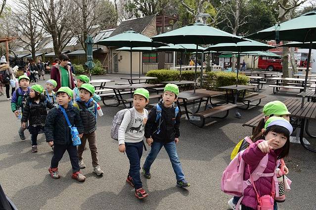一路上看到很多幼儿园和学校组织孩子们来参观,都戴着统一颜色的帽子,叽叽喳喳的KAWAYI这,KAWAYI那,很可爱。