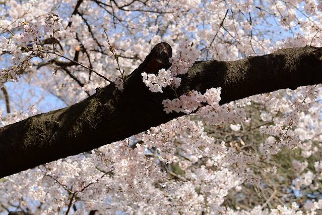 午餐过后,拐进了目黑川的主干道,樱花开得很盛,按照网上提供的坐标,找到了上原的家,时隔4年,街景发生了变化,还走了一遍滨崎每天都走的绿色栏杆马路牙,然后就在那个桥上拍下了目黑川的美樱。