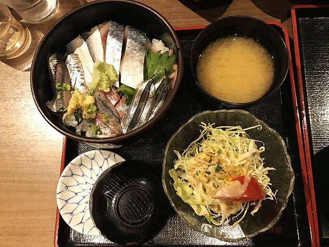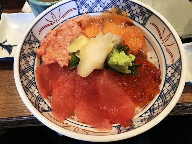 穿过阿美横丁过一条马路就来到了吉池大厦,午饭吉池食堂tabelog评分3.5,我们到的时候还需要等位,预留信息的时候满本全是日本人名,就我写了个英文名,怕叫号时出问题,一直站在叫号人员跟前仔细听着,5分钟我们就进场了,四人位好等一些。我们点了亲子丼、海鲜面、生鱼丼,菜上齐的时候,生鱼丼看上去有点腥腥的,鱼皮刷刷反光,吃到嘴里巨鲜啊,非常棒,一点不腥。Samon是天使宝宝,大人吃饭他全程睡觉,等睡醒了我们也吃完了,正好喂他。