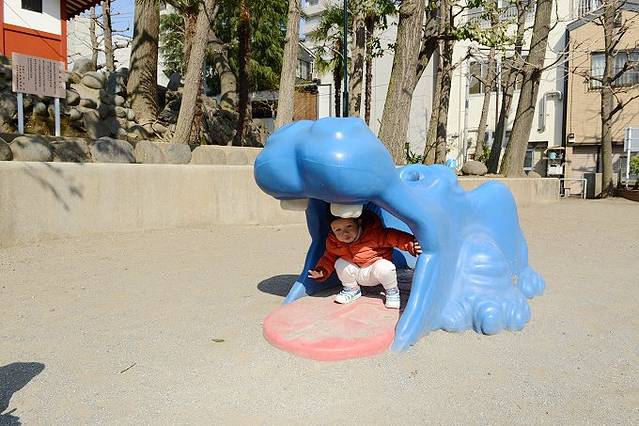 阳光正好,我们本打算从浅草离开,去地铁的路上路过了这个儿童公园,正好边玩边吃水果,Samon玩得很开心,吃了两个大草莓,还吃了半个橘子。
