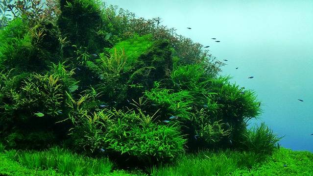 一进门就能看到天野尚大师的作品,他是世界顶级的水族箱造型师,草缸大师。