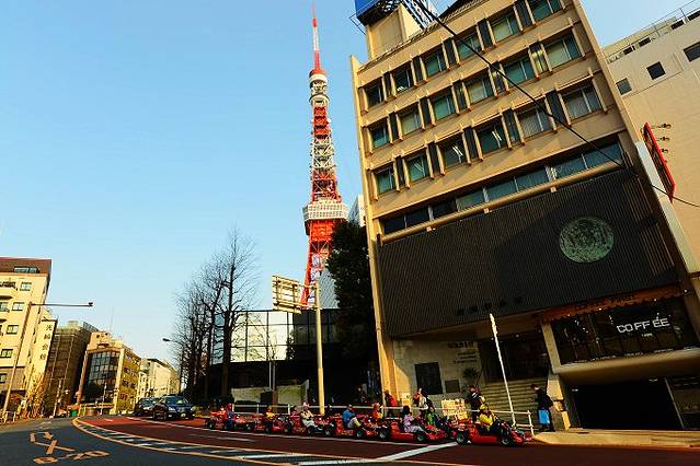 路上看到了一支卡丁车队,全部动漫装扮,打头的是皮卡丘,最后一个是超级玛丽,逗。