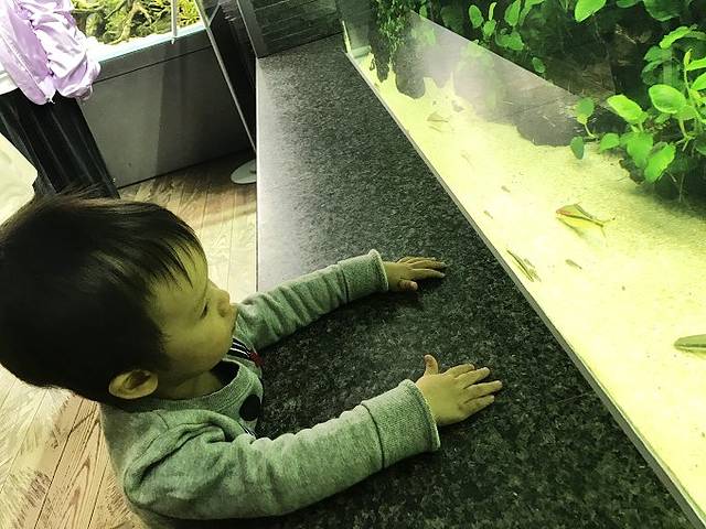 借用两张网上的全景图,站在这两个巨型草缸面前,心都静了,真的巨美,Samon看得很专注。