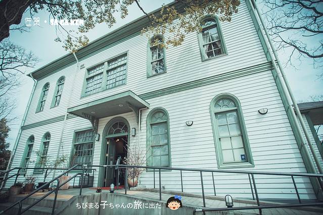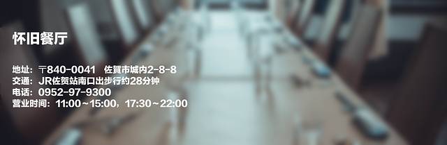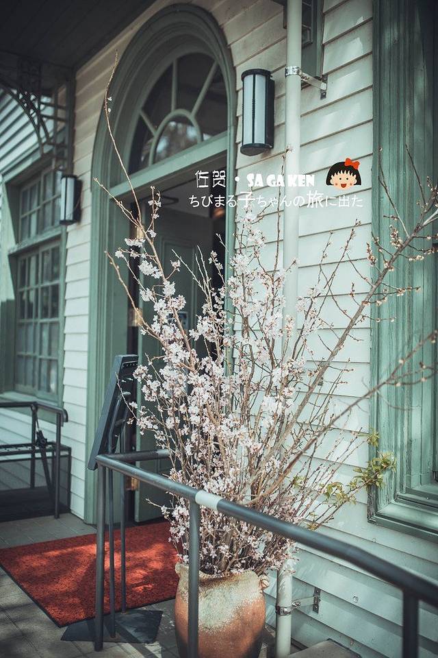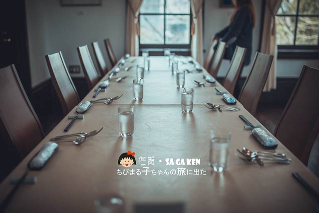 出来之后去坐大巴可以直达JR站,然后JR坐到佐贺城站下来步行5分钟就到了今天午饭的地方。这个餐厅朋友说叫复古餐厅,看起来是一个日本式的小洋房,颜色和大部分的日式建筑有区别,非常的清雅。门前有很大一块场地停大巴车,看来平时也会经常接待很多来宾。