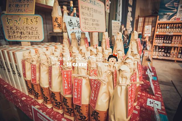 从神社出来沿街走到一家卖伴手礼的礼品店,除了有特色的茶碗杯具,还有很多特色的零食。主要是价格便宜,包装不会太占空间,买回去当伴手礼最适合。