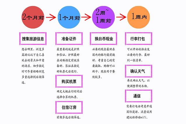 首先先为大家献上亲自整理的出行前的大致安排,如果是有计划地旅行,那可以按照一定的时间顺序安排出行的事宜。