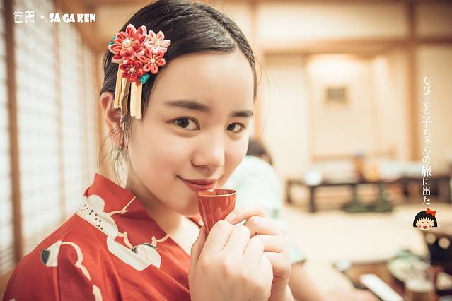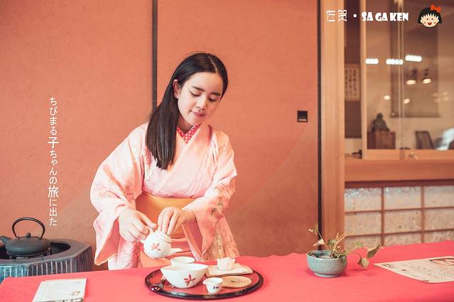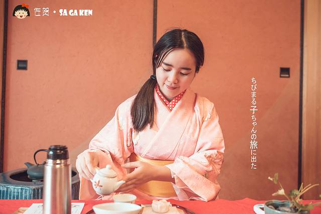 换上和服,到附近的一家叫【肥前通仙亭】的茶室饮茶。