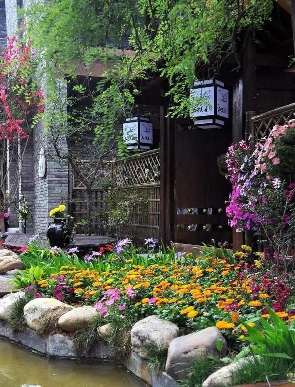 在江南风情的街巷弄堂内处处鲜花盛开、溪流潺潺;漫步其中,心也突然变得安静。