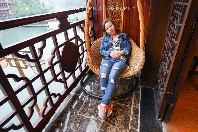 每一个江景房貌似都带这种小吊椅。就在吊椅这里坐着晃着,看着江面上的小船悠悠划过,河面泛起层层涟漪,烟雾氤氲。