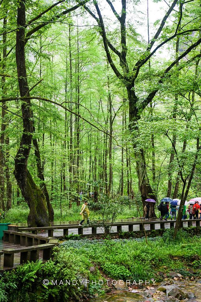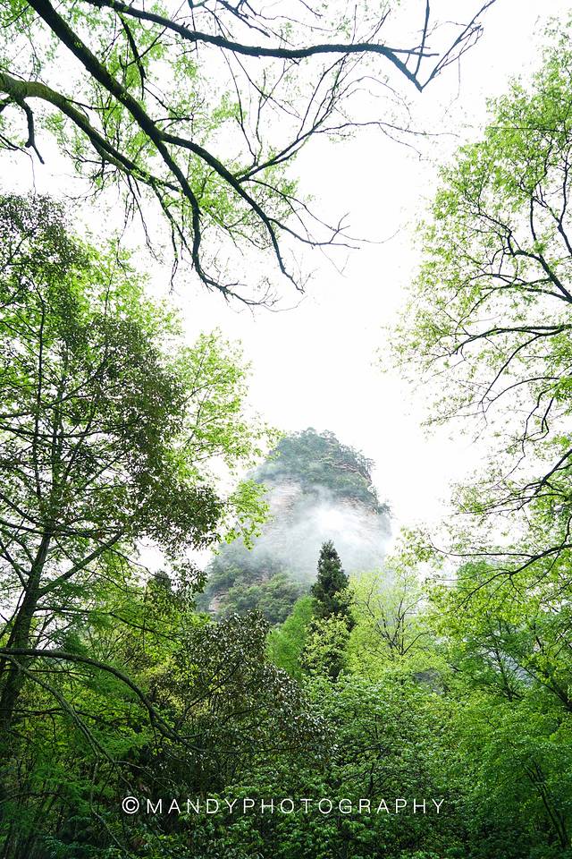 我们去的当天下着小雨,树林里环绕着一层层的水汽薄雾,比起大晴天,这才是张家界景色最好的时候。