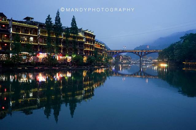把行李放下之后,我们趁着晚霞时间赶紧下去拍点照片。百度说,凤凰的夜景是中国古镇之最。