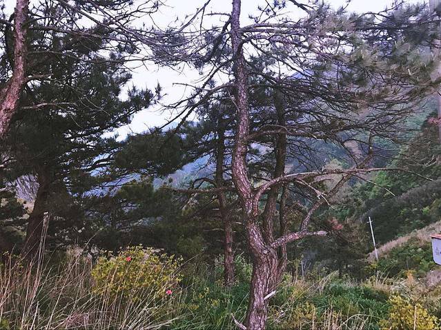 上山的途中只觉得艰辛和快乐,看那山上昂然耸立的松树,它迎着风,迎着我们,似乎在招手,欢迎我们的到来……