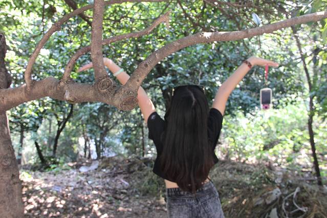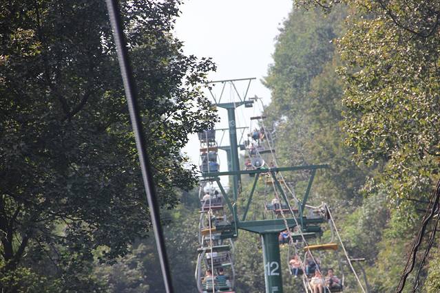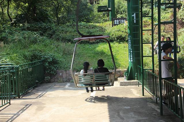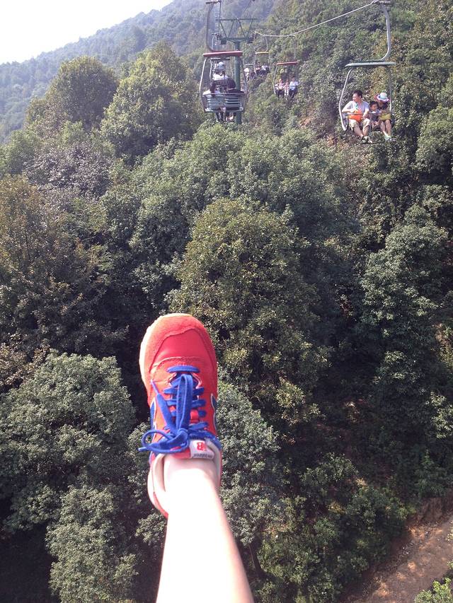 索道其实可以坐蛮久的,要不是太阳光刺眼,我觉得可以来回多坐几次。高度还是有的,往下看有点怕怕的,看着前方就ok了,男朋友胆子小,比我还怕,被我狠狠地嘲笑了一番。坐在缆车上还是不忘自拍了几张,因为神器有带子可以扣在手上还是比较安全的,要是手机的话最好要注意不要手滑掉下去。