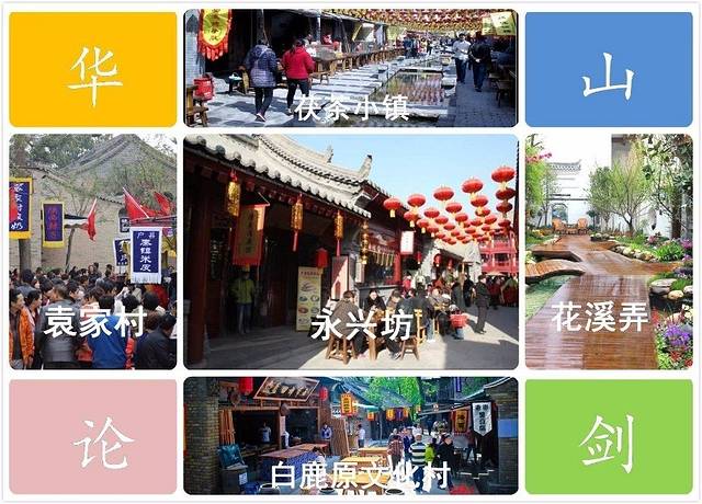 袁家村、茯茶小镇、白鹿原、永兴坊是以传统的关中小院,民俗美景为主,外加传统乡村小吃为业态。