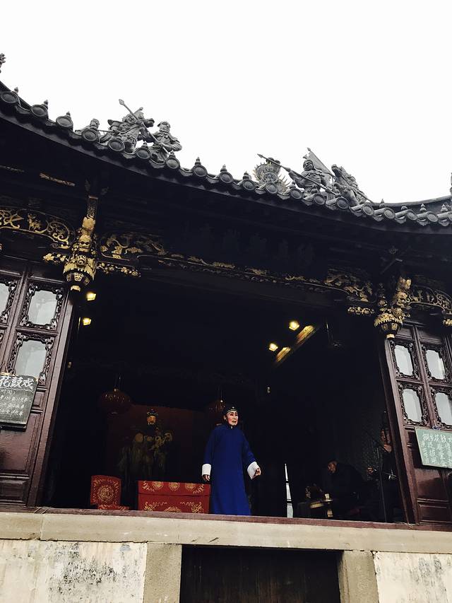 出了东栅,我也不知道是从哪个门出来的,就来到一个广场一样的地方,这里所说的广场不似现在的广场,是之前的那种集会的地方,三面是老房子,正对面是一个老戏台,可能有两米多高!当时正好有人在上面唱戏,三个老人,一个唱戏,一个敲锣,一个打鼓!在这种被电脑电视代替几经灭绝的老戏台上高歌!都是八十多岁的年纪了,就是特别传统,说出来可能都不信,但是当时我是真的哭了,不知道为什么!就是特别感动!被老艺术家震撼到了!
