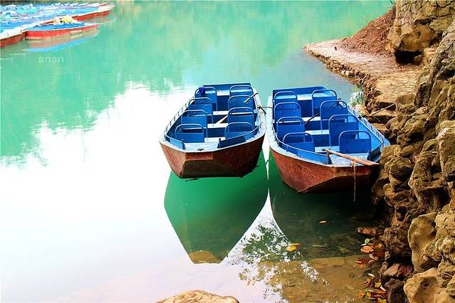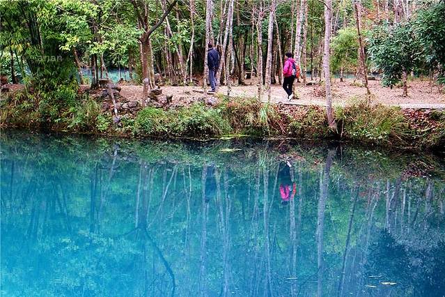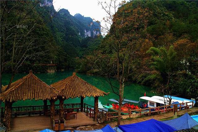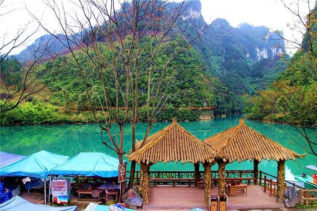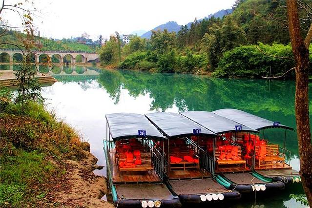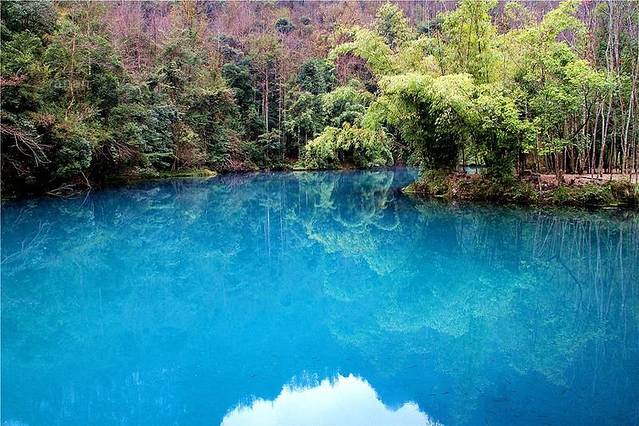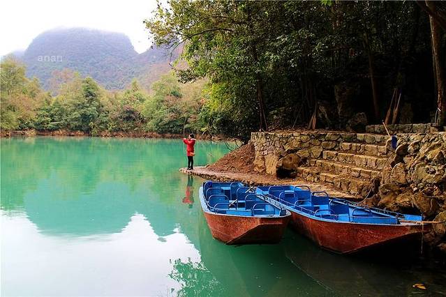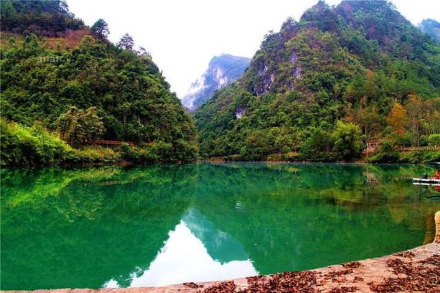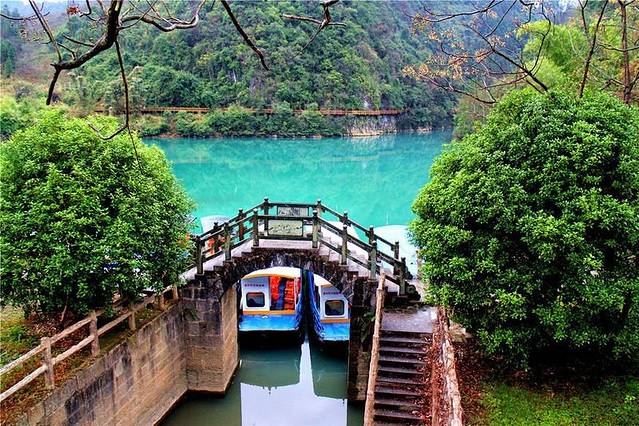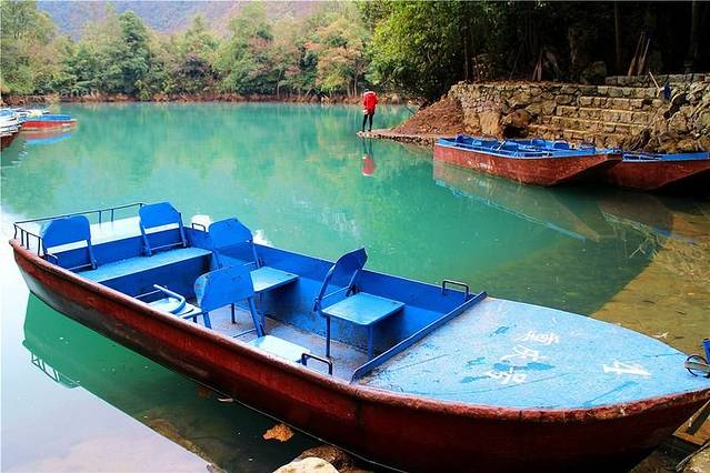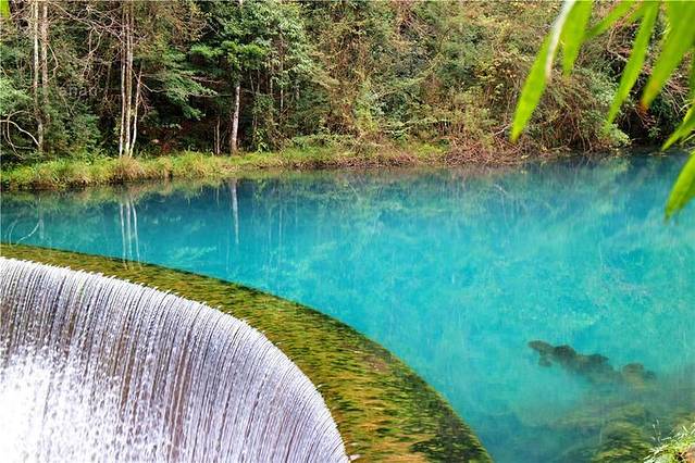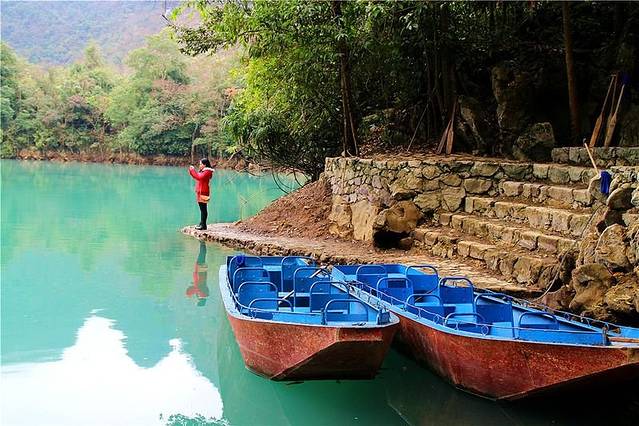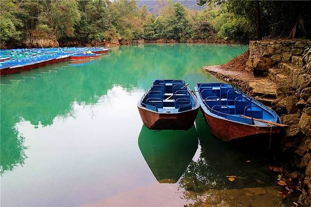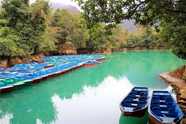 ⑤ 鸳鸯湖:鸳鸯湖是一个天然的喀斯特高原湖,划船入内仔细观察,这里的树木植根于水中的石头,又透过石头扎根于河床。由于地形、水深和光线的变化,可以看到五颜六色的景色。