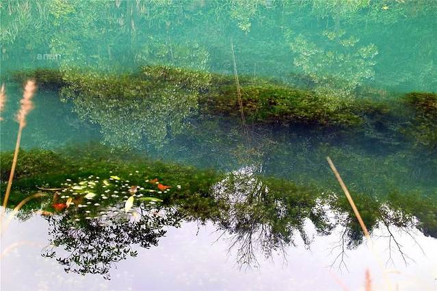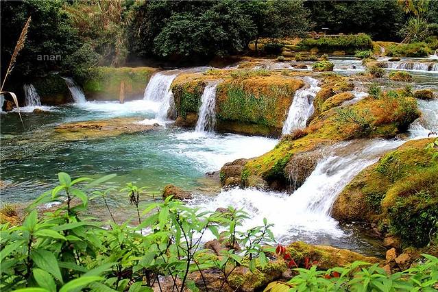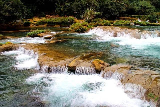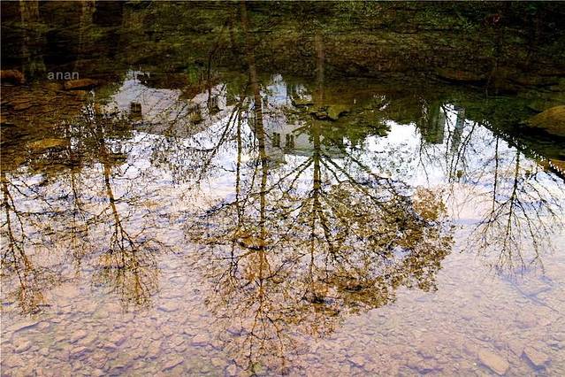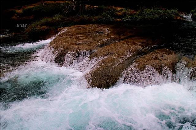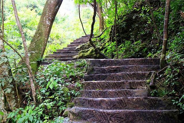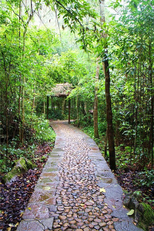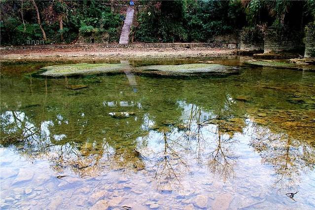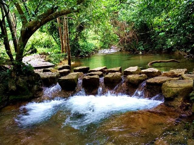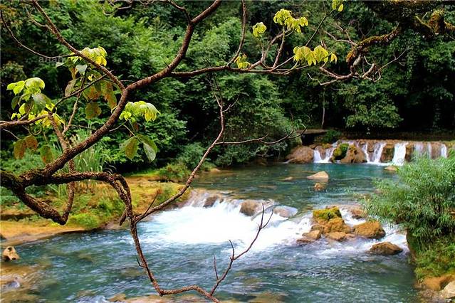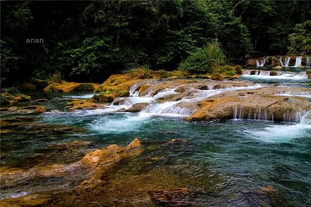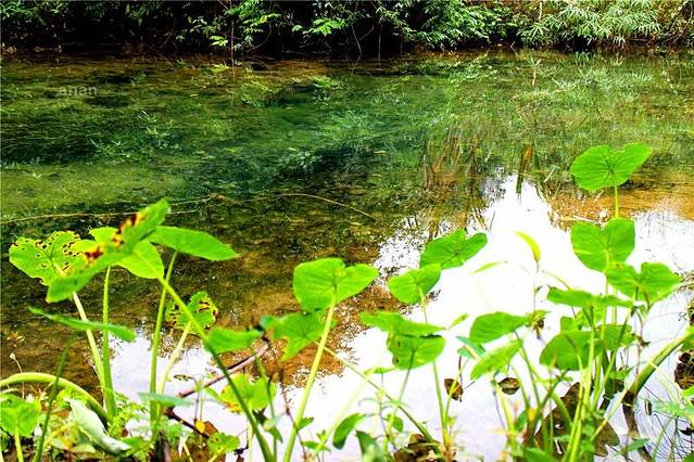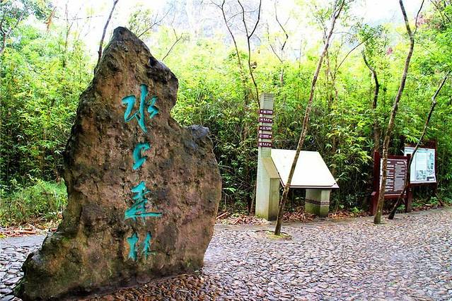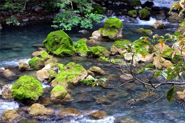 --这里的千百株树木,包括珍奇树木数十种,全都植根于水中的顽石上,又透过顽石扎根于河床,造就了这幅水中有石,石上有树,树植水中,水、石、树相偎相依的奇景。