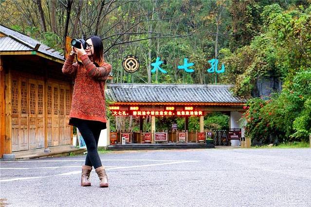 来到大七孔门口特别激动,先跟标志图来张合影,我怎么感觉像是到此一游照(*@ο@*) 哇~O(∩_∩)O哈哈~