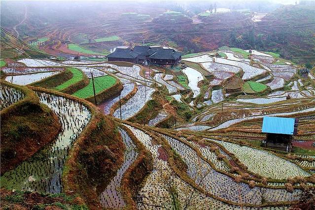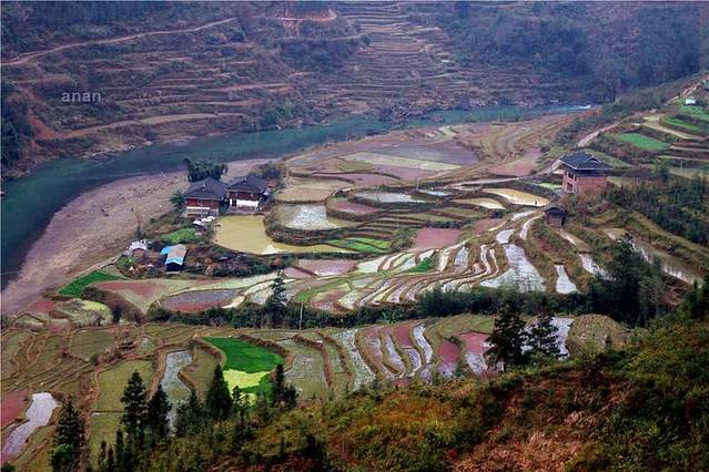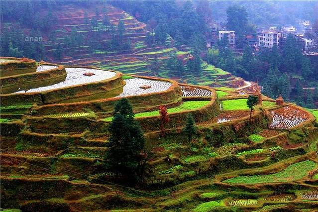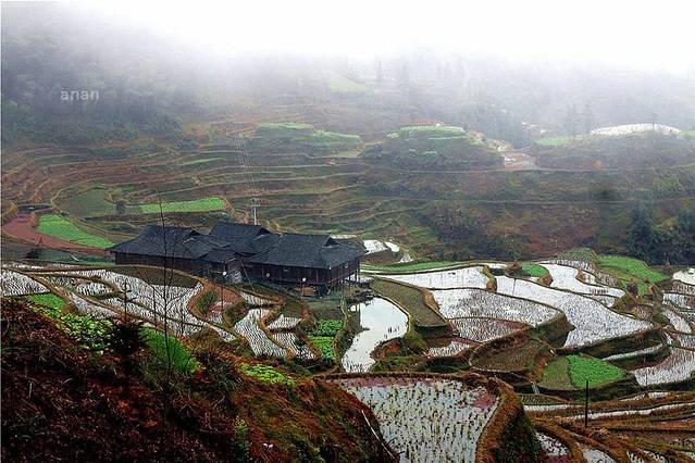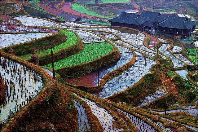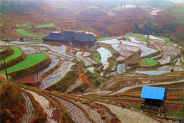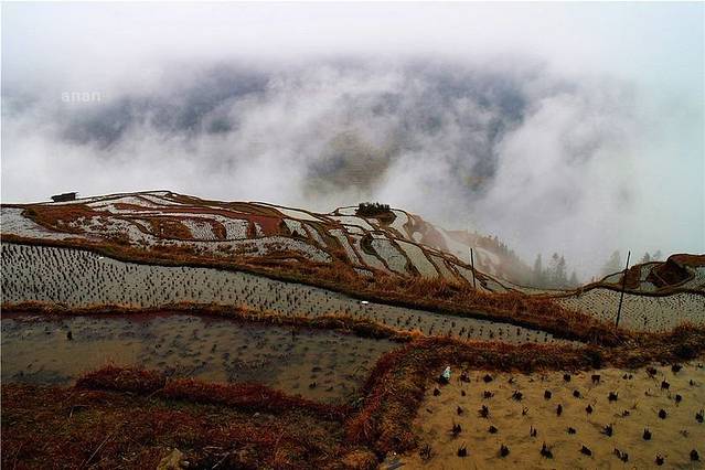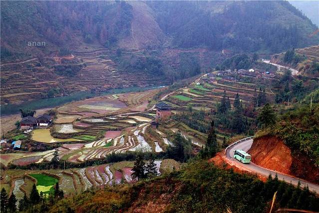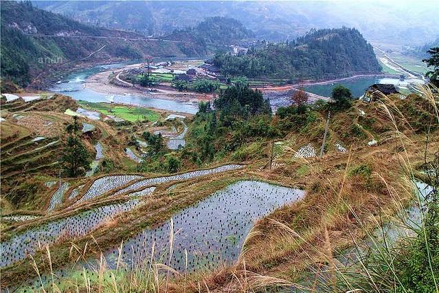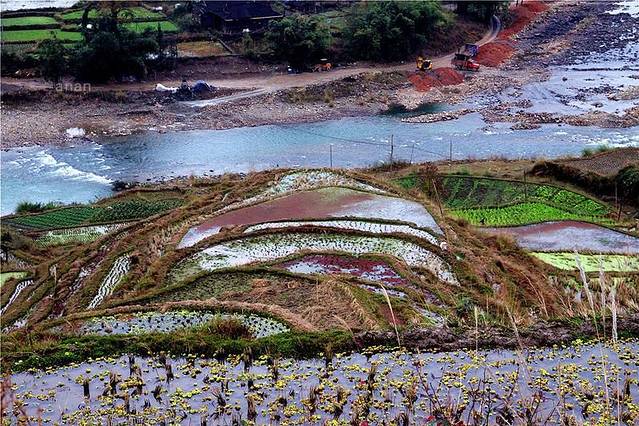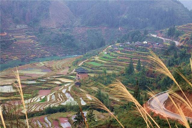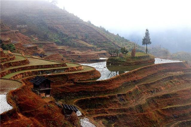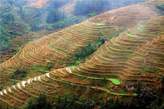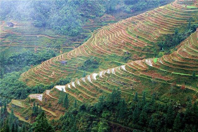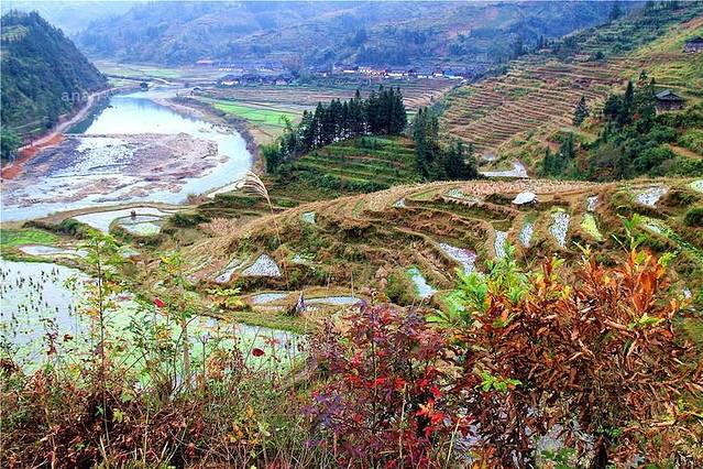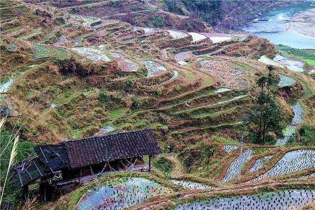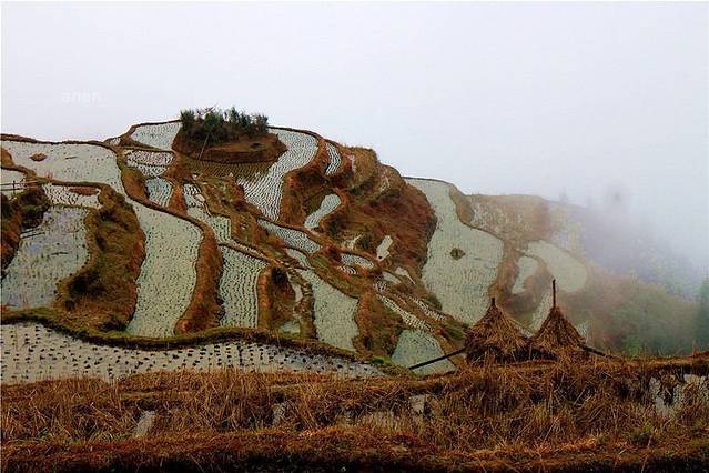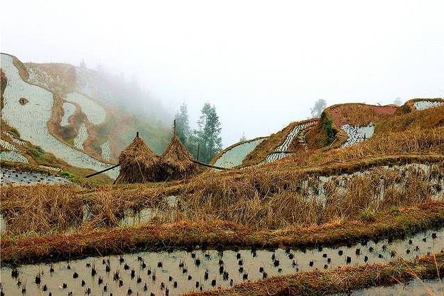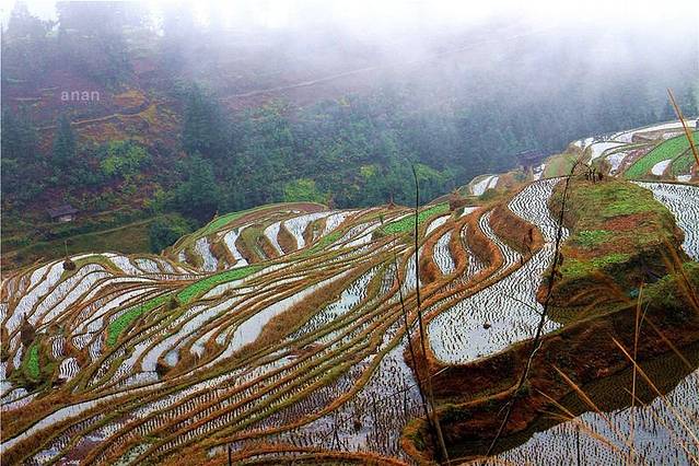 加榜梯田在每年4、5月间开始灌水,10月初最适合摄影,金黄色的稻谷与银色的水面交错煞是好看。