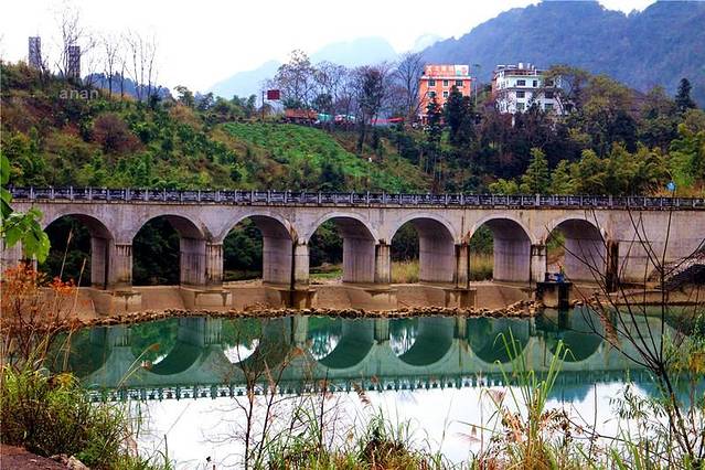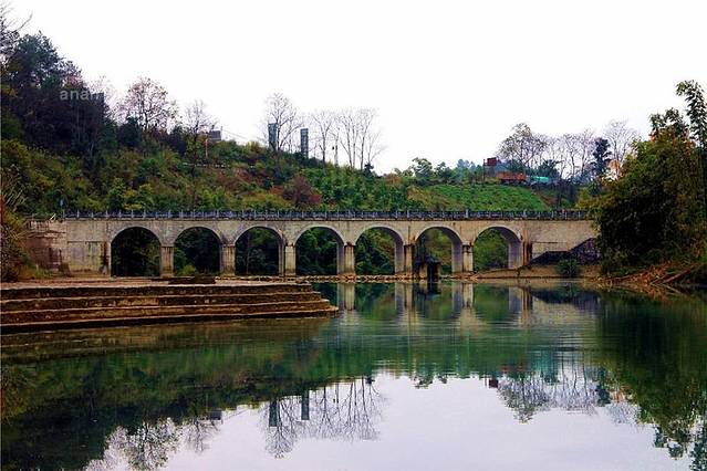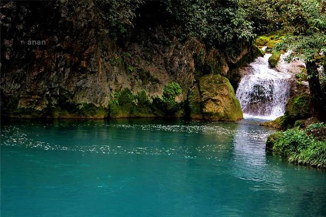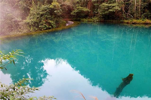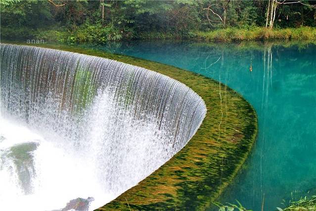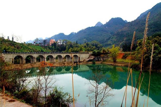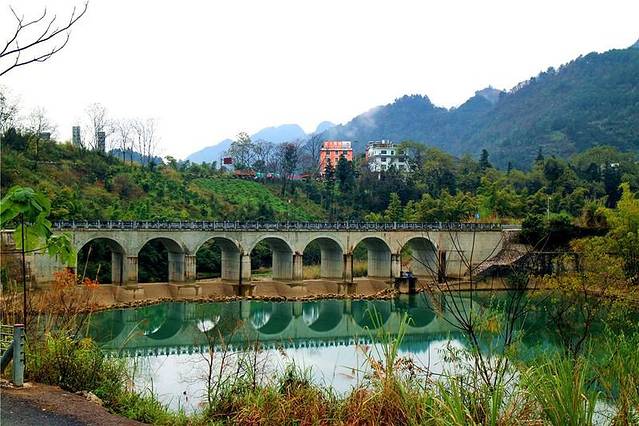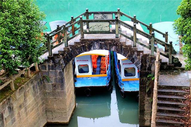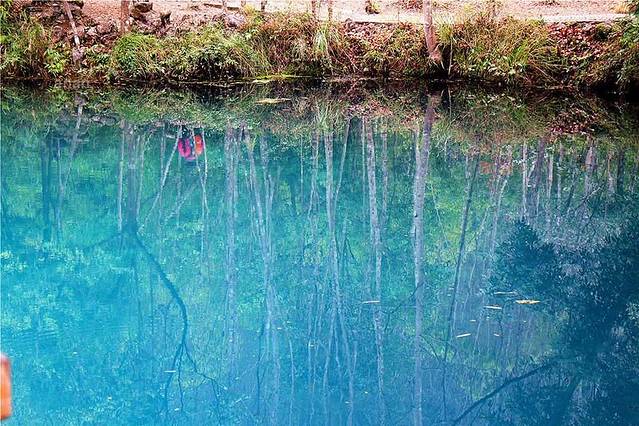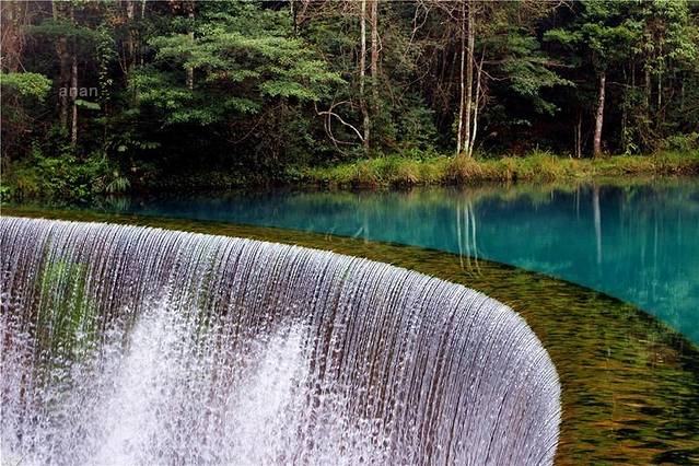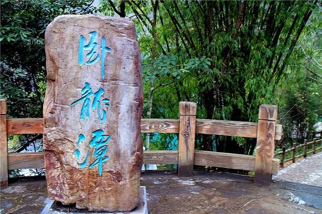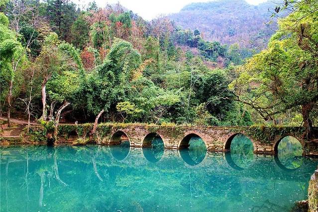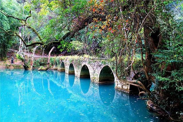 感觉景区大门的“大七孔”三个字特别养眼,看后面的照片你会发现其实这三个字的颜色跟这里水的颜色是一样的哦。碧绿碧绿的。