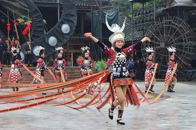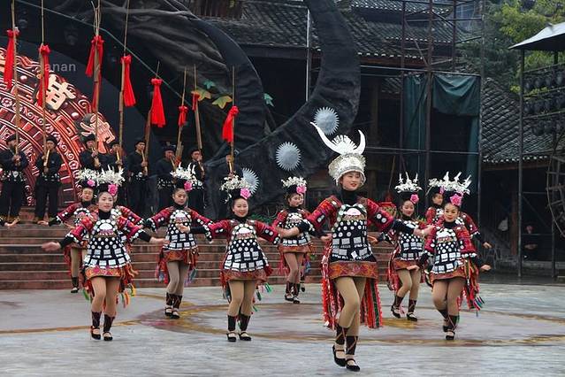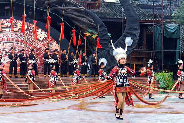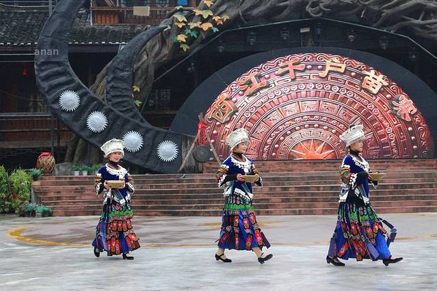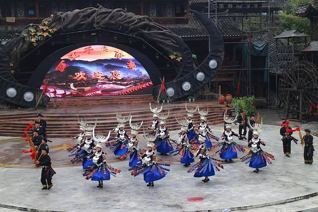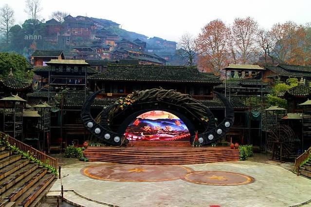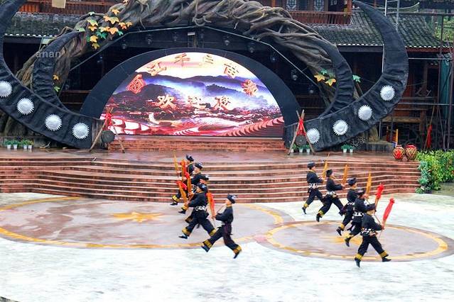 景区里面的表演场,以寨子为背景,更是体验了原生态的文化