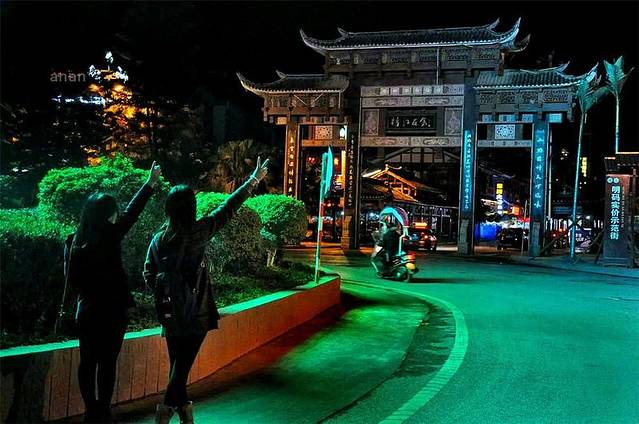 桥的右手边就是往主街道和青龙洞的方向,主街道比较繁华,基本都是卖特产、饰品的,包括酒店也在这边,还有小吃