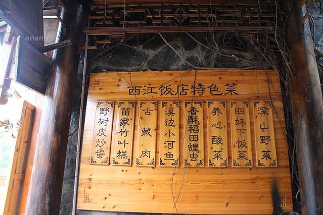 千户苗寨的景区大门,特别的大气。路上进来千户的时候是沿着河走的,路边也有一些当地居民建的小房子,大晴天旅行网的师傅跟我说夏季的时候当地人就是在这边开餐厅,更特别的是有在河里直接摆上桌子就吃饭的,想想炎炎夏日,踩着水,感受着溪水的流动,在餐桌上吃饭是一种何等的享受。