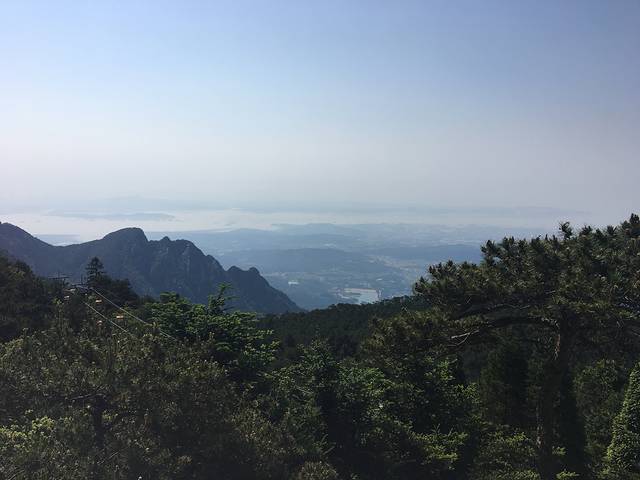 由于本人不是早起派的,所以含鄱口观看日出直接就帕斯掉了。早餐在庐山牯岭老面馆吃的(邮局对面的那家),大众点评里有团购,我点的庐山竹笋肉丝粉,嫩嫩的小芦笋是我的爱。昨天中午没有事先准备点吃的,今个吃饱后采购了些上山食物便往观光车东线含鄱口出发。当天大雾萦绕,向远眺望鄱阳湖看不清,左为五老峰,右为太乙峰,听旁边的导游介绍五老峰其中的奥秘,我脑袋旋转着90度也没有参透其中,外加上温度渐渐升高,决定离开此地前往下一个景点。这地方有人会拉你乘坐索道去观看李白诗中飞流直下三千尺的景色大口瀑布,要另行购买门票且为了节省体力,我们决定瀑布的部分就直接去看三叠泉了。