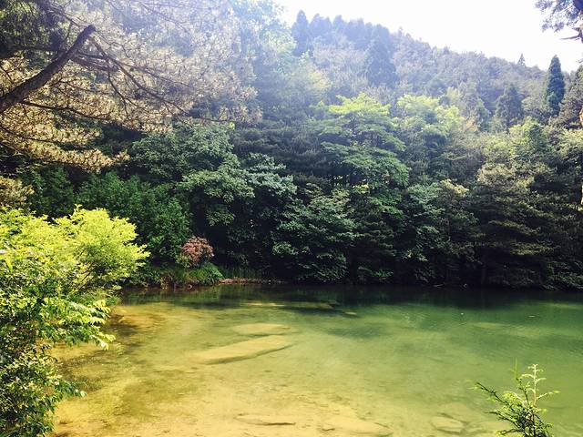 电站大坝下来后往下走,景色真的很美,像是画里一般。一路向前,向着乌龙潭方向出发,这个当初西游记水帘洞的外景拍摄地,水分三股,自上而下,下潭较为平夷。此处虽更有名,但却没有黄龙潭更惹人喜欢。黄龙潭一条幽长瀑布从高处跌下,旁边布满了苔藓并印有龙泉,水质清澈透明,给人以凉爽的感觉。中途我们在景区稍微吃了点东西,最好自己随身携带点吃的。再往前走一段就是三宝树了,两棵柳杉,一棵银杏,感慨一下大自然的神奇,稍作休息商议一下接下里的行程。