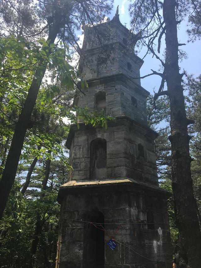 坐观光车来到大天池,主要是想去一眼龙首崖,还有走一走悬索桥,如果体力和时间都不赶趟的可以就此略过。一进去能看到圆佛殿,走了一段有两个分岔路口,选择了右边后来分析了下,应该是一边山路,一边平地,都可以到大天池。我们走的山路途径了斜塔,不知道是否就是所谓的天池塔,在此遇到了一对情侣,剩下的路程大家结伴而行,相互照应。大天池之前看攻略的时候已经大概知道一二了,所有走到后果然不出我所料,真的好失望,这时差不多11:30左右了。可是为了之后景色,需要继续前行。