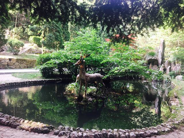 三宝树之后有两条路,一个是通往芦林大桥的上坡路,一个是通往芦林停车场的台阶路。腿有些累了,原本打算直接坐观光车回牯岭镇,但似乎还不太尽兴,也就有了后面比原规划多转的这些地方。过了马路往前继续走便到了芦林湖,湖水碧绿如镜,四周密林蔽日,湖中心还有小亭子,此景让人心情大悦,决定继续往前走一段到达了庐山博物馆,也为毛泽东同志旧址。内部让我们看到了从古至今许多文人墨客的诗词,了解了庐山美景的演变变化,小院内让人感到自然清新,很舒适的修养之地。观光车坐到了美庐,满心欢喜到此处提示闭馆整修,只能到此一游的在外面观赏了一下,也为此处旅行留下了点遗憾。