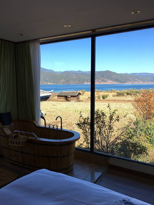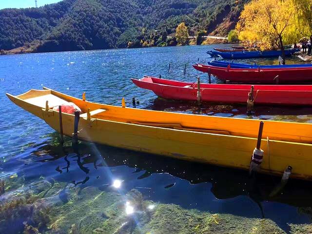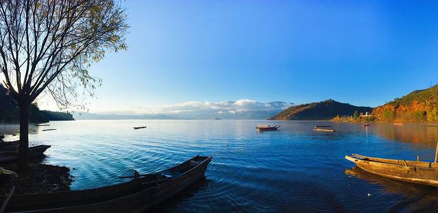 住宿:泸沽湖萤火虫度假屋观景客栈,我们四个人订的豪华鱼缸家庭房,民宿应该新建的,还很新,可以直接在他家点菜吃,500+/晚。在新开发的一个景区,游客还不是很多,他家超级棒的是后面就是泸沽湖,还停着好多艘船,重点是没有游客,可以尽情的拍全世界只有你的大片