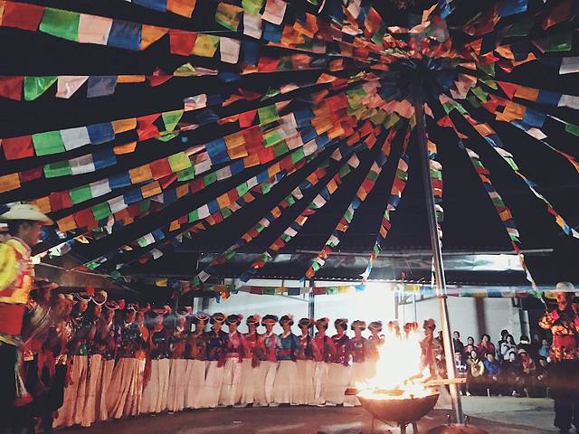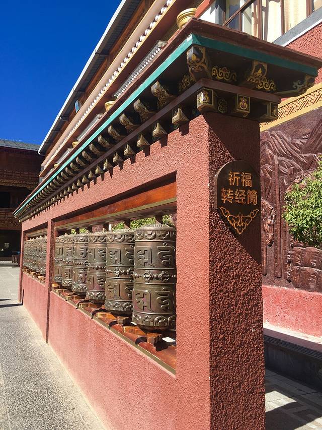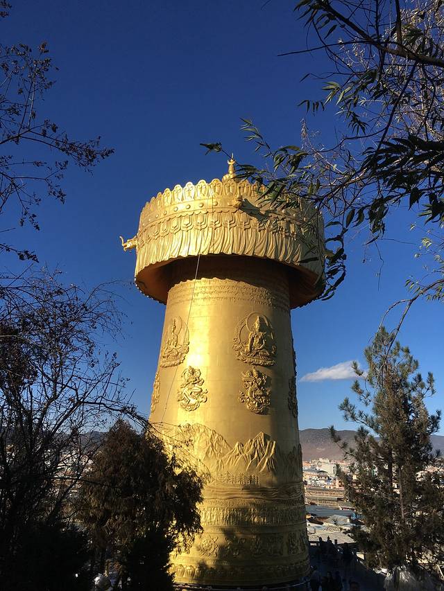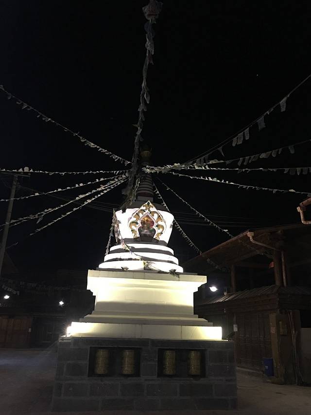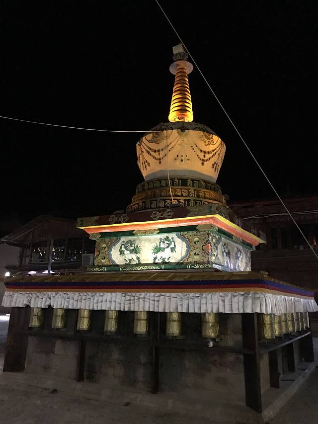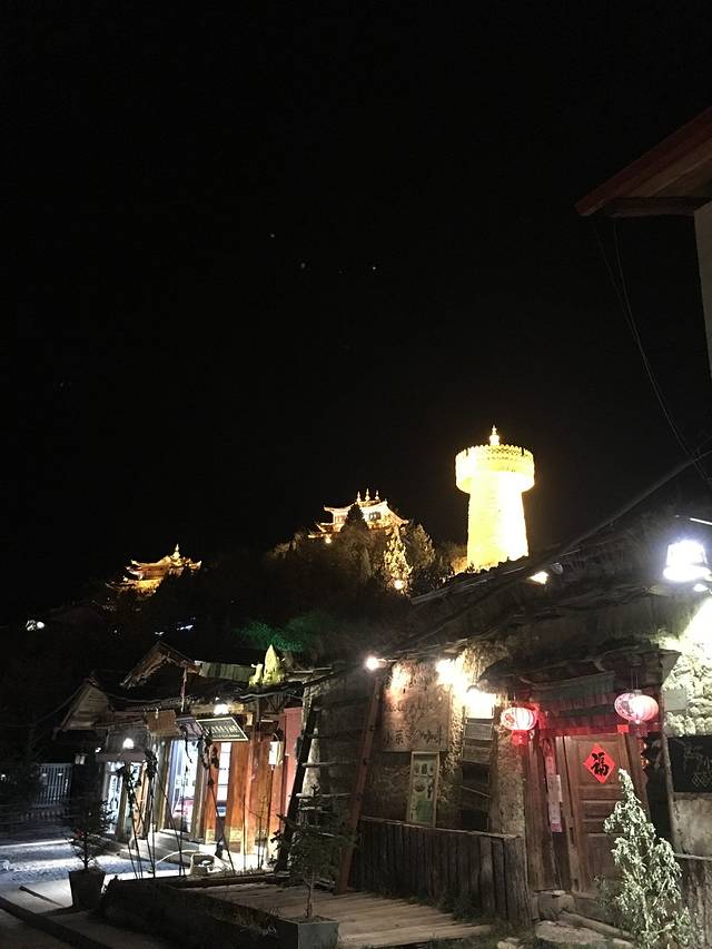 第一天我们到达香格里拉已经快下午5点了,只来得及放下行李然后出去觅食去了。逛了龟山公园,亚洲最大的转经筒,十几个人一起合力转了转经筒,祈祷我身边的家人朋友健康。晚上大概的逛了下古镇,店铺开着的不多,游客也不多,晚上7点多几乎都没什么人了,但是广场上有人在跳舞。