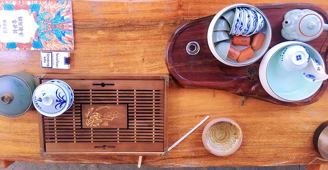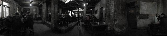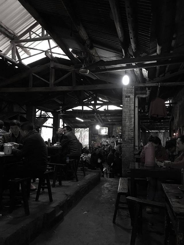 交通茶馆,距离川美几百米的距离,因《疯狂的石头》取经而闻名,据说一位川美的教授为了留住这茶馆默默的支付了10年的房租,一进茶馆的小门,仿佛穿越到了6、70年代,里面的大叔大爷打着桥牌,下着象棋,高兴了还会唱上两句。而这些大叔大爷一点也不排斥拿着长炮短炮或者是我们这些拿着手机的对着他们咔咔咔的拍,为了体验下他们的生活,我们也点了两杯茶,一杯铁观音,一杯竹叶青,13元,还可以无限续杯。