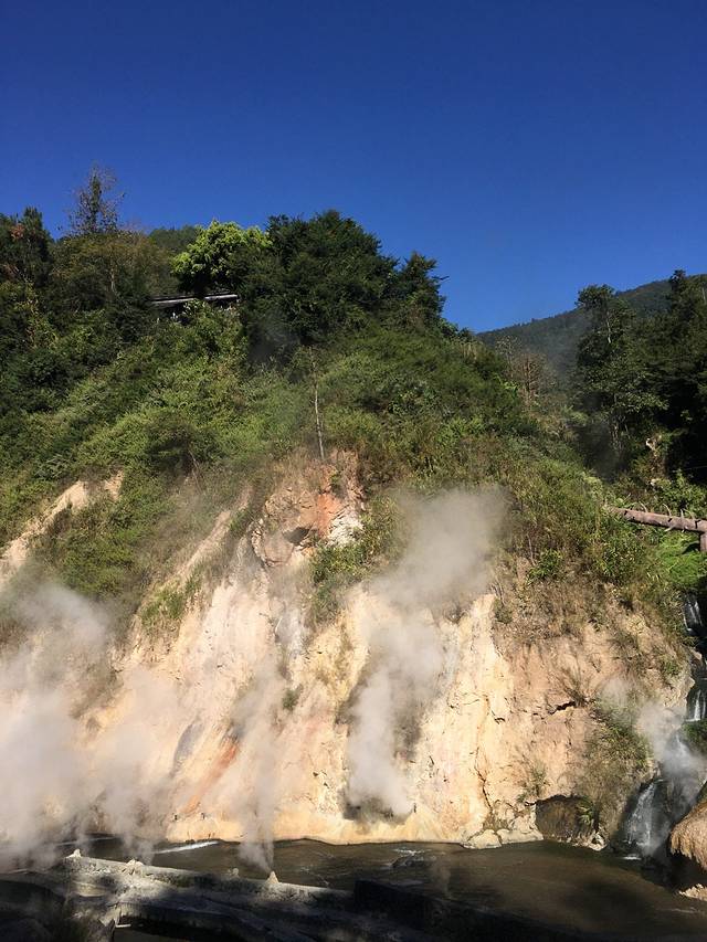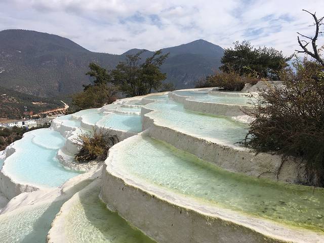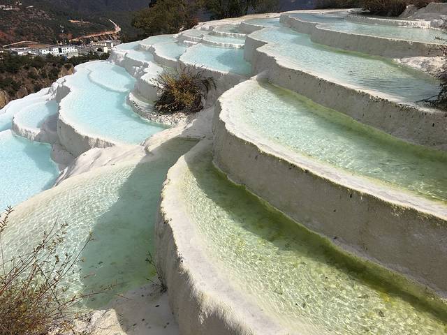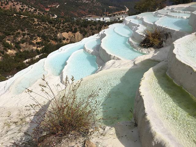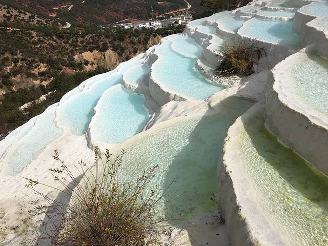 第三天我们安排了白水台,一个自然形成的池子,但是好像被哪个老板包了,现在正在施工,左边的水全部被抽干了,只有右边一小块的水,但是庆幸的是我们还能看到这大自然生成的美景,还能近距离的接触它,据说明年开始就只能在观景台看了,而且下面的也是人工的,并不是自然生成的,旁边的老人跟我们说这个水每年升高1cm。