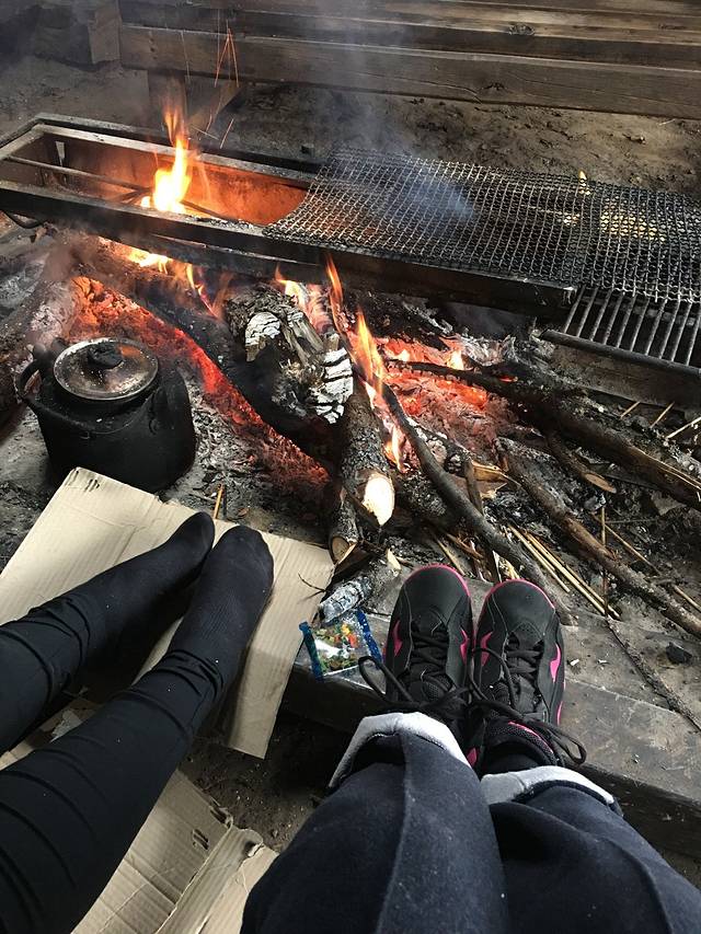 老兵火塘:就是坐在类似于炕的边上吃烧烤。