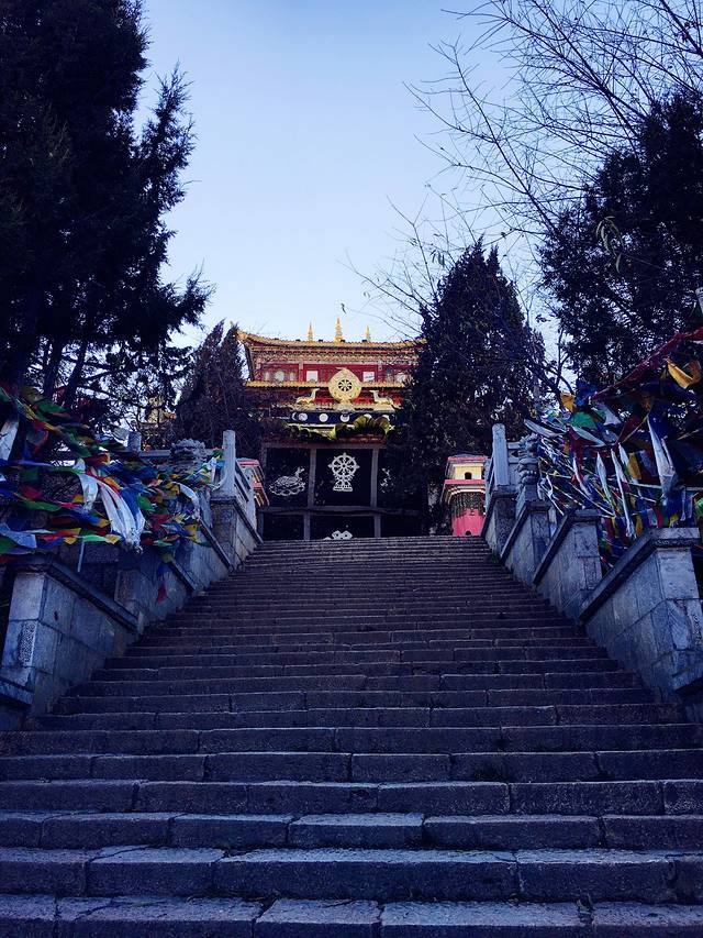 下午我们从白水台回来已经将近6点了,然后问了客运站的人,松赞林寺还可不可以去,关了没,没想到得到了意外的答案,就是还开着,而且工作人员已经下班了,不收门票,那还不赶紧去,打了滴滴直奔目的地。其实我们就是想去拍张外面的照片,并不想进去,但是现在即使是拍外面的照片也要买门票了,所以不用花100+/人的门票我们相当欣喜啊。可是我们并没有找到网上那些照片的角度,就是松赞林寺倒影在前面的河里,可能要去对面的山上吧,但是就我们这手机也拍不了,就草草的拍了几张回去吃饭了。